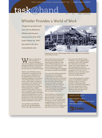 Description: 4-page, 2-color newsletter for employees and clients of TASK Construction Management Inc.